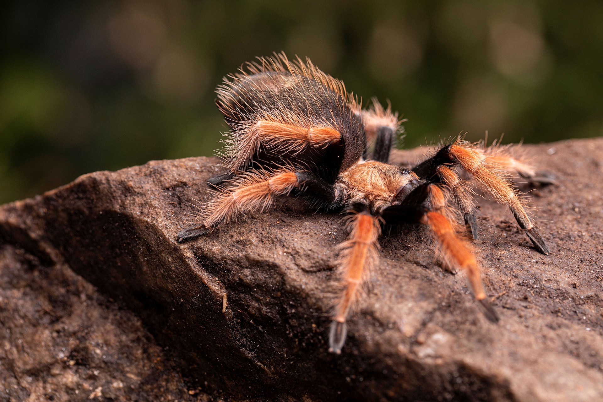 Den mexicanske orangeknæede tarantel lever i tørre skovområder og buskland i Mexico, hvor den jager insekter, små krybdyr og pattedyr. Den kan have et benspænd på op til 15 cm og lever typisk mellem 10 og 25 år – med hunnerne som de længstlevende. Tarantellen er kendt for sine flotte orange striber på benene og sit rolige temperament, hvilket gør den populær blandt edderkoppeentusiaster verden over.